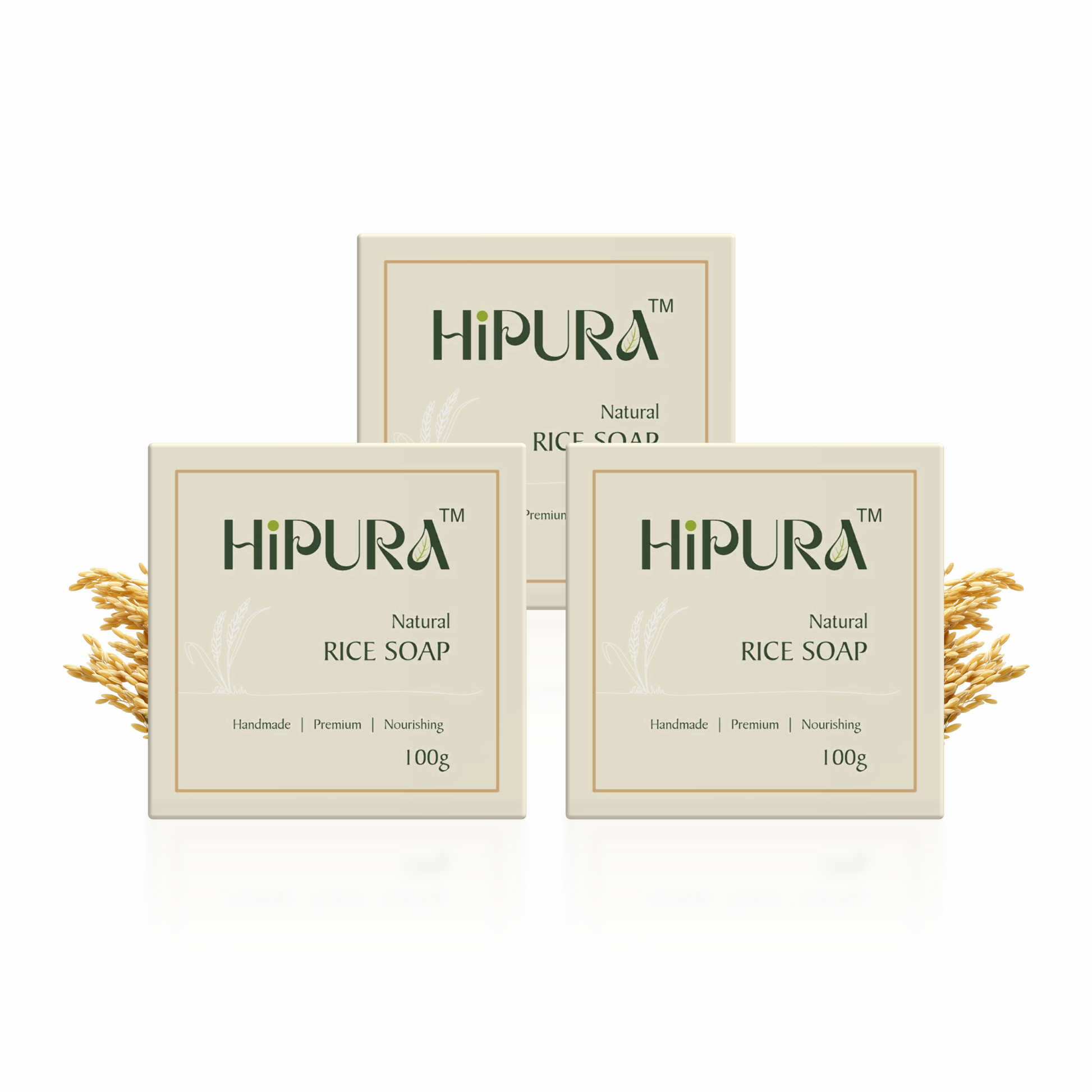 ✨ Unlock the secret of soft, radiant skin with HiPura Rice Soap Pack of 3 — a handmade skincare bar enriched with rice water, coconut oil, and glycerine for gentle nourishment and glow.