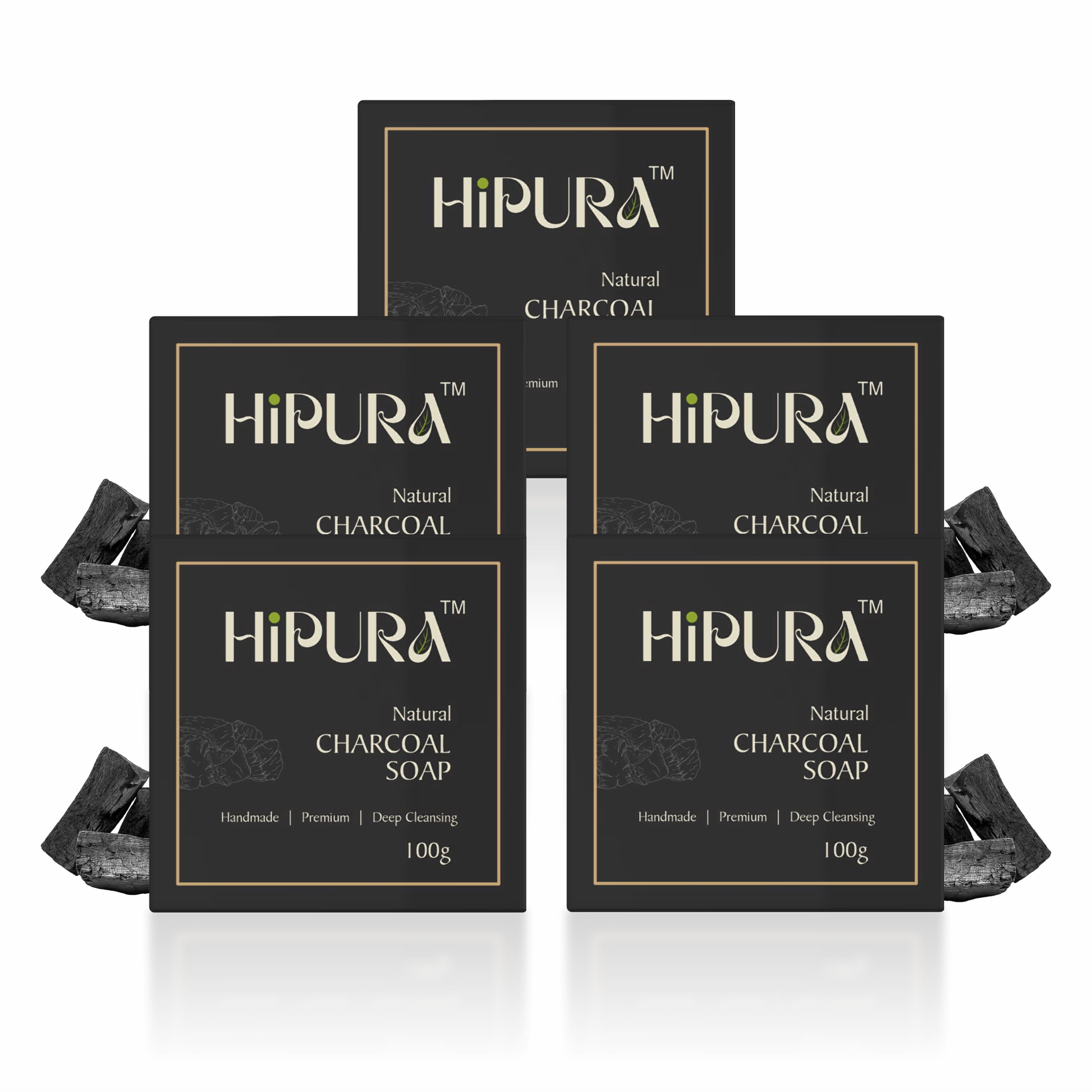 HiPura Charcoal Soap – Pack of 5 | Activated Charcoal, Lemon & Cow Dung Ash | Handmade Detox Soap for Face & Body | 100g Each