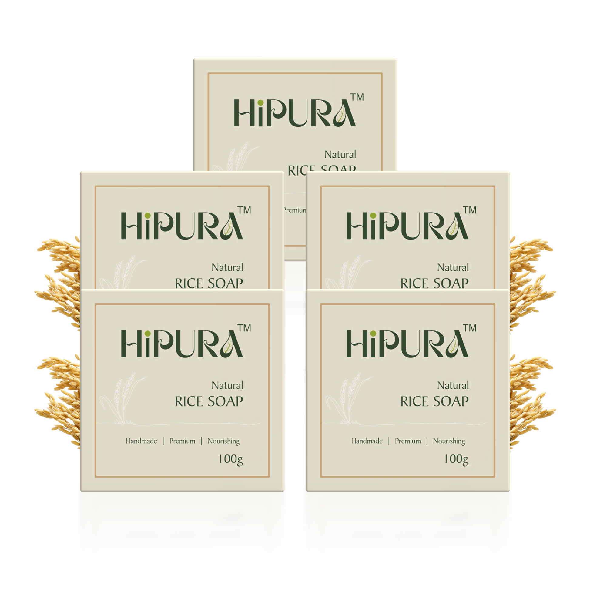 ✨ Unlock the secret of soft, radiant skin with HiPura Rice Soap Pack of 5 — a handmade skincare bar enriched with rice water, coconut oil, and glycerine for gentle nourishment and glow.