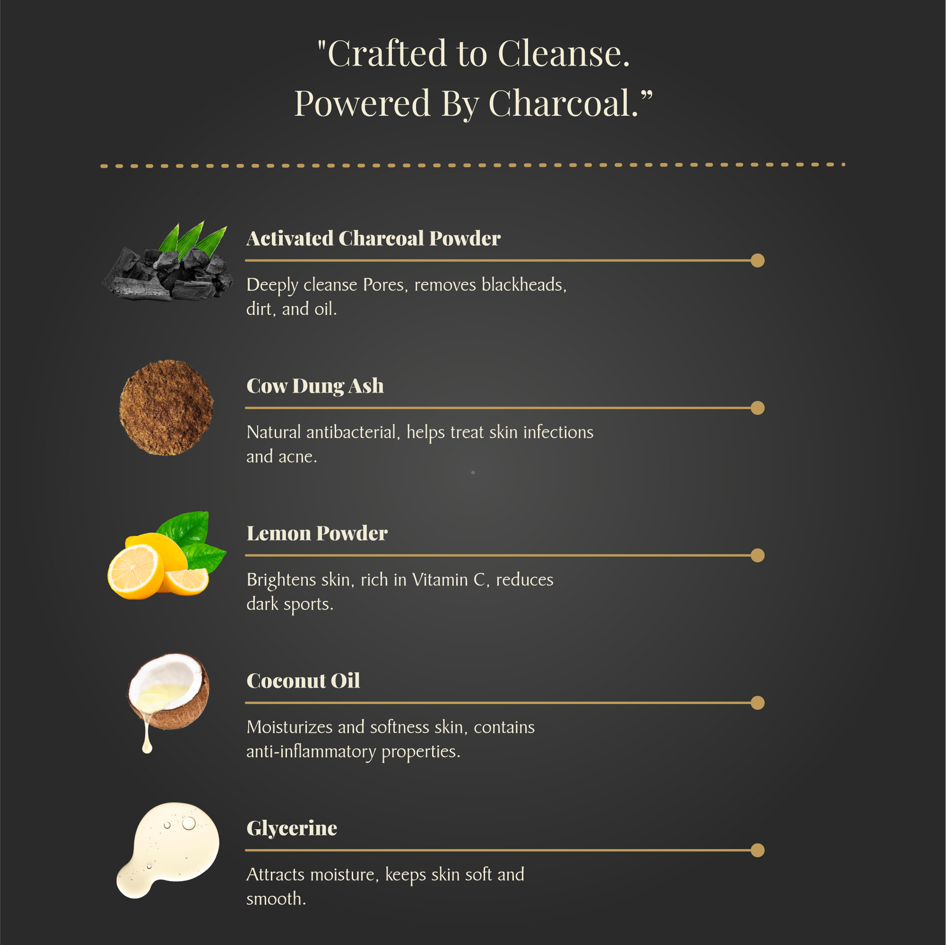 HiPura 100%handmade Charcoal Soap with Activated Charcoal & Cow Dung Ash | Deep Cleansing & Detox Bar for Face & Body | Handmade Transparent Soap for All Skin Types | 100g